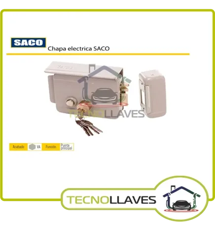 La cerradura o chapa eléctrica SACO combina las funciones de control eléctrico para apertura de la puerta, la rotación de clave y la función de apertura manual. Esta chapa cuenta con la opción de bloqueo, que puede usarse principalmente para edificios residenciales, agencias, escuelas, hoteles, almacenes de fábricas y otros departamentos. Esta chapa puede ser abierta con un pulsador, lector de tarjetas, lector de huella, a control remoto o desde su citofono o video-portero.